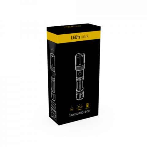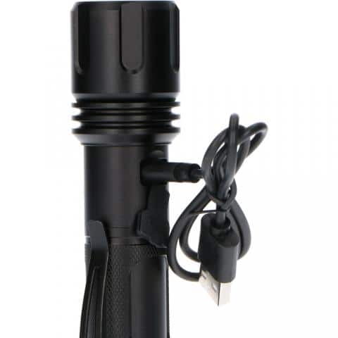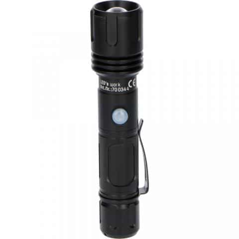 Dessutom är ficklampan skyddad mot stänkvatten och har en praktisk fickklämma, så att den enkelt kan fästas i bälten, verktygsväskor och fickor. Ficklampan har ett litiumjonbatteri som kan laddas med en USB-kabel.