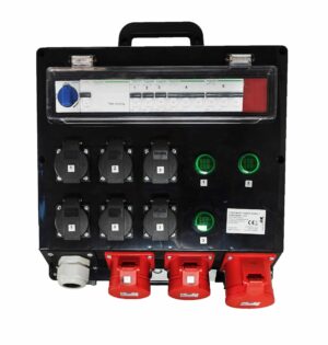 63A våningscentral med fast inkoppling och fasmätare. Fasmätare mäter ström…
