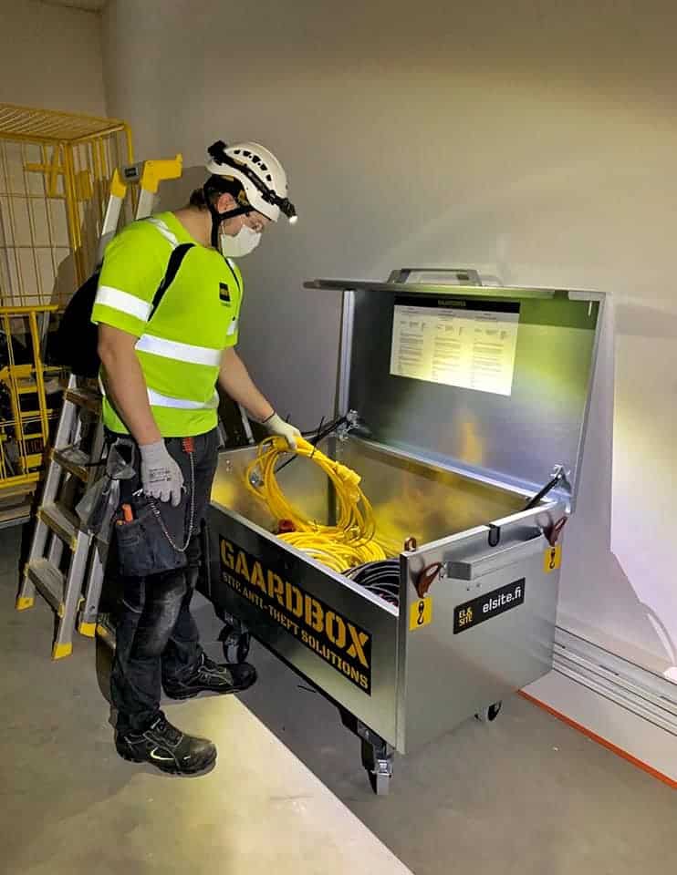 GAARDBOX on riippulukoilla lukittava turva-arkku työkaluille ja tarvikkeille. Murtosuojatun teräslaatikon tilavuus on 449 litraa ja sen pohjalevyssä ilmareiät, joiden kautta sisään päässyt kosteus pääsee haihtumaan. Turva-arkussa on kaapelisyöttö, joten laitteet voi jättää latautumaan laatikkoon myös sen ollessa lukittuna.