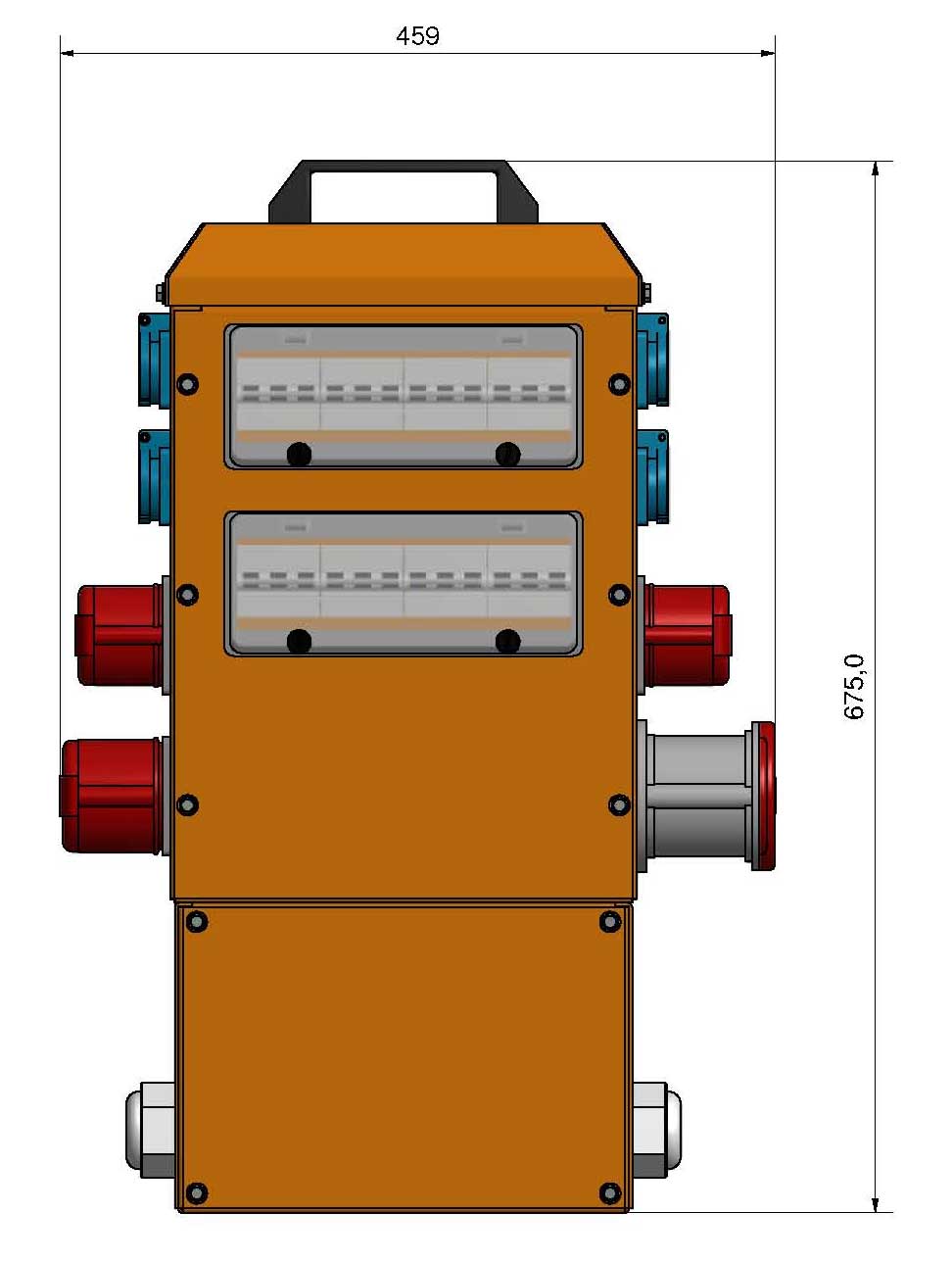 Keskus on valmistettu jauhemaalatusta ja korroosionkestävästä 2 mm:n alumiinista ja sen vankka rakenne kestää kovaa käsittelyä työmaalla. Keskuksessa on kantokahva ja sen saa ripustettua seinälle. Kannet ovat itsesään sulkeutuvaa turvamallia.