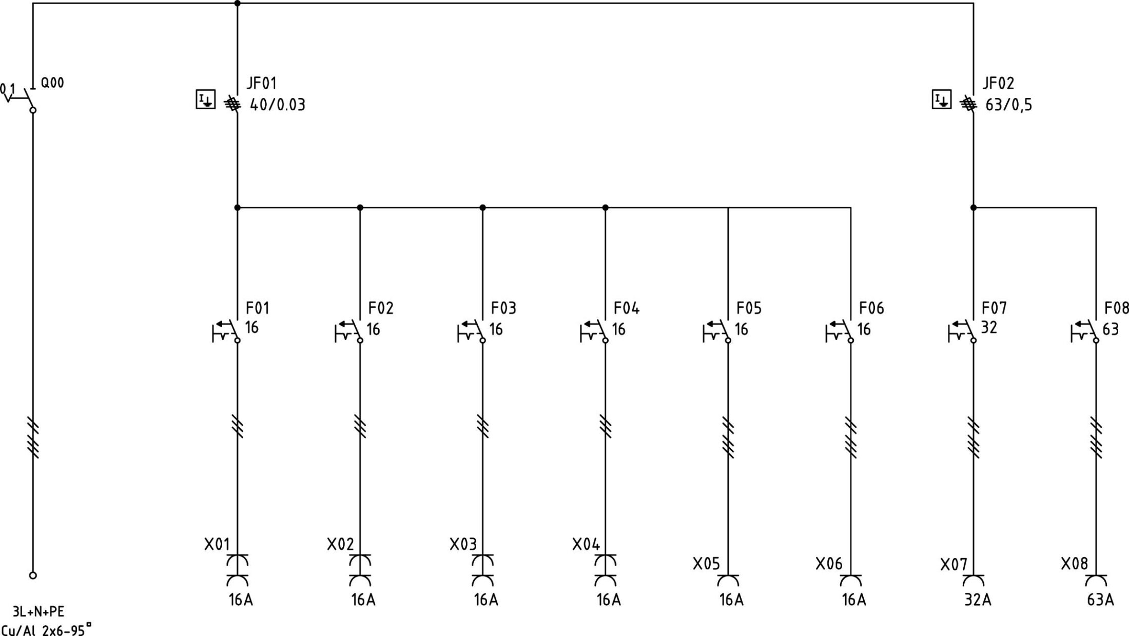 Kiinteän syötön 63/100A ketjutettava kerroskeskus, jonka syöttökaapeli kytketään kiinteästi keskuksen sisällä. Näin kerrosten välille voidaan mitata juuri sopivan mittaiset ”kaapelitampit”. Jätä tamppiin kuitenkin hiukan ylimääräistä kaapelia, jotta keskusta on mahdollista siirtää työmaan edetessä. Keskus on varustettu vaihtoliittimin.