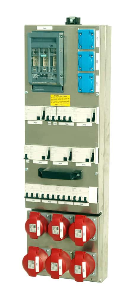 Pistorasiamoduuli SMC moduulikeskuksiin. Moduulissa on 3 kpl 16A (230V), 2 kpl 16A ja 4 kpl 32A pistorasialähtöjä.