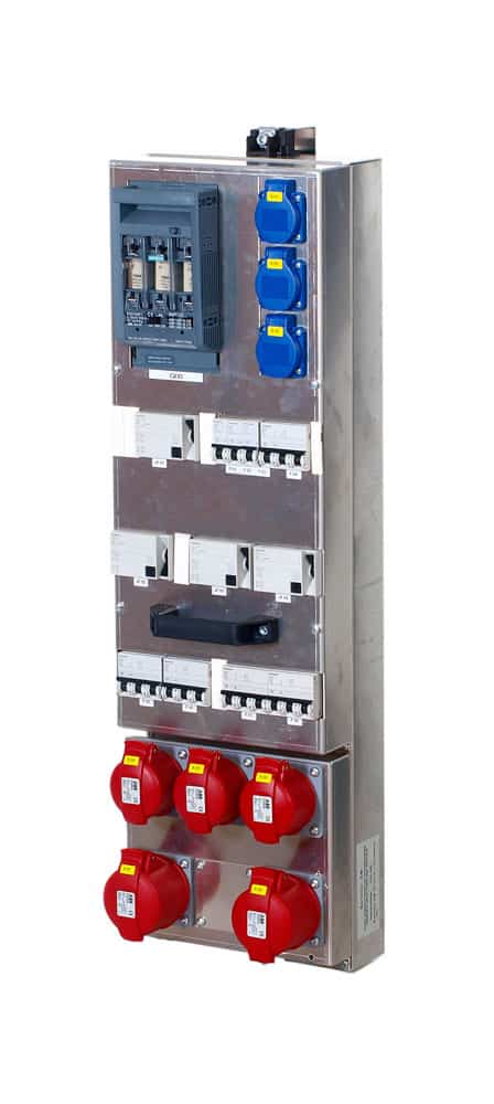 Pistorasiamoduuli SMC moduulikeskuksiin. Moduulissa on 3 kpl 16A (230V), 3 kpl 16A ja 2 kpl 32A pistorasialähtöjä.