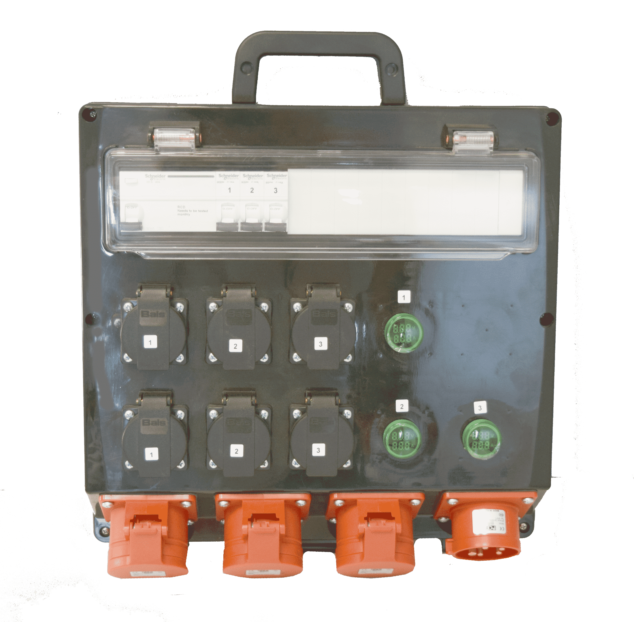 Helposti siirrettävä ja kevyt salkkumallinen keskus, jossa 230V ja 16A lähtöjä. 230V pistorasiat on jaettu tasaisesti kaikille kolmelle vaiheelle. Sähkön syöttö keskukseen 16A pistotulpan kautta. Keskuksessa on laadukkaat komponentit kuten Bals pistorasiat ja Schneiderin vikavirtasuojat, jota on sijoitettu kirkkaan kannen alle suojaan.