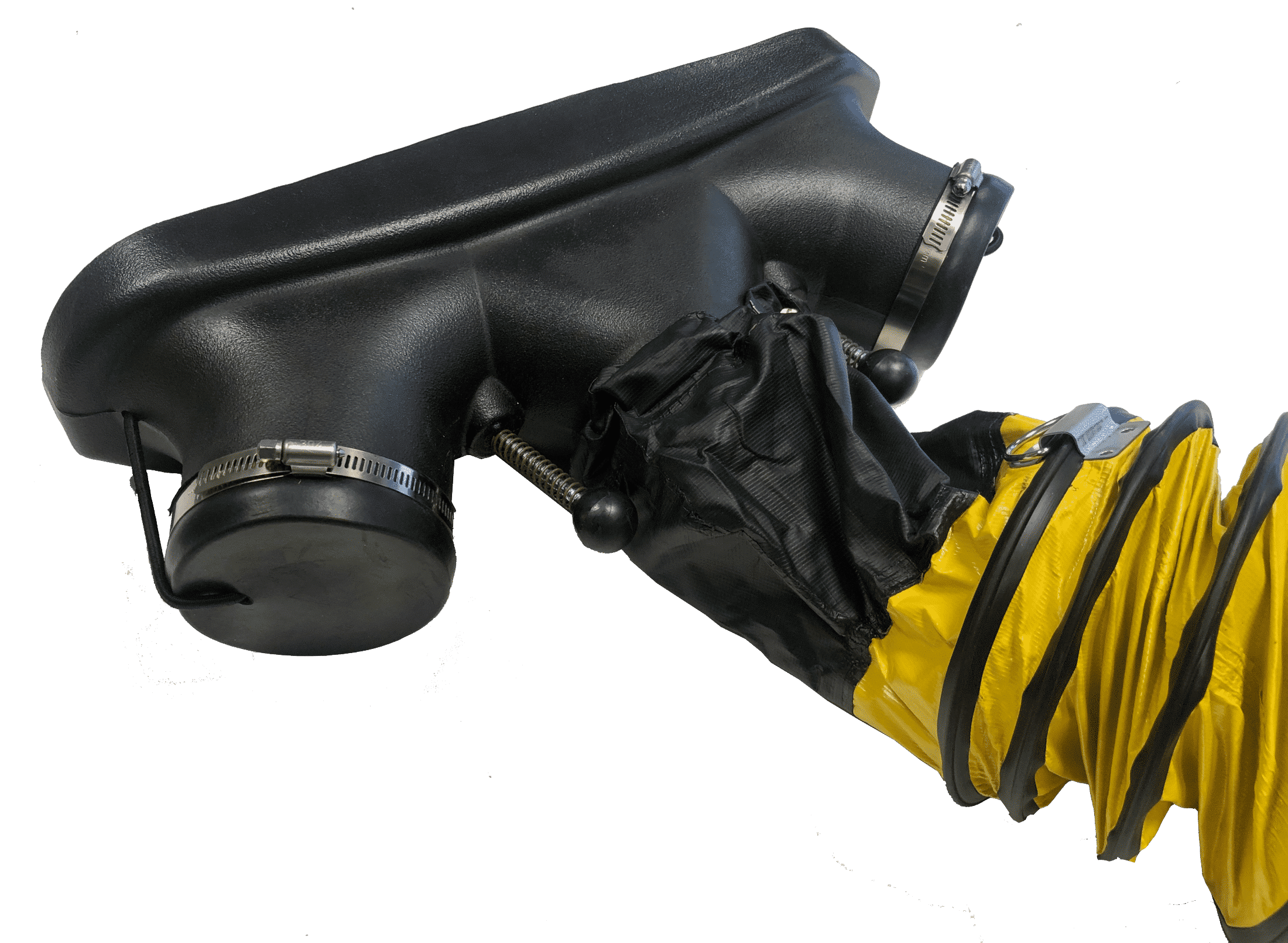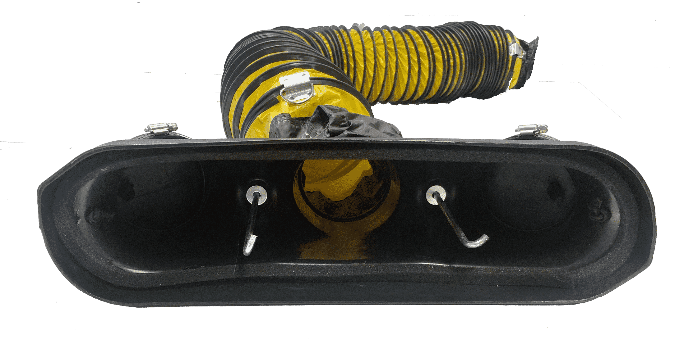Adapteri kiinnitetään simpukkapuhaltimeen jousikoukuilla. Adapteri sopii tiiviisti valikoimamme suurempaan, 5100 m3/h Gaard® Blower puhaltimeen. Huom! Pakkaus sisältää vain adapterin ja letkut myydään erikseen.