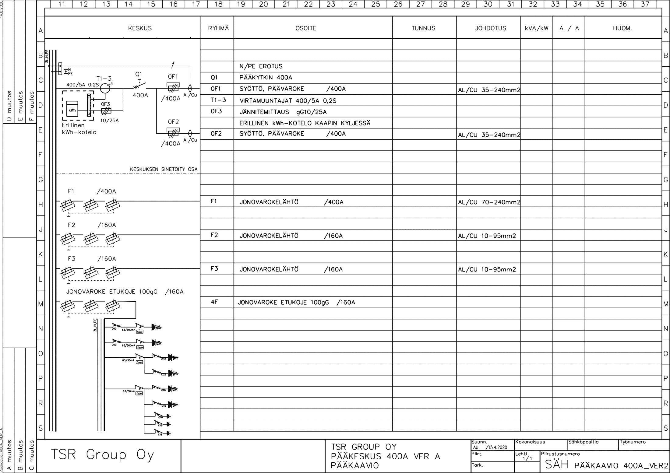Suomessa kuumasinkitystä teräksestä valmistettu 400A työmaan pääkeskus, jossa laadukkaat eurooppalaiset komponentit. Keskuksessa on ulkoinen kotelo mittaukselle. Virtamuuntajat sisältyvät aina keskuksen toimitukseen. Keskusta voidaan siirtää pumppukärryillä, trukilla tai nosturilla.