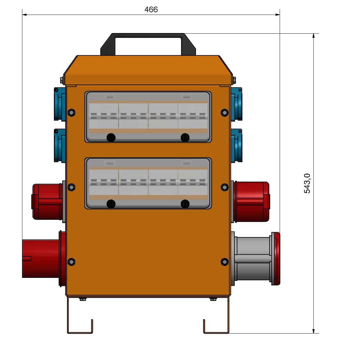 | Pistorasialähdöt | 8 x 16A (230V), 1 x 16A, 1 x 32A, 1 x 63A |