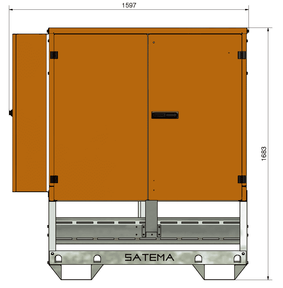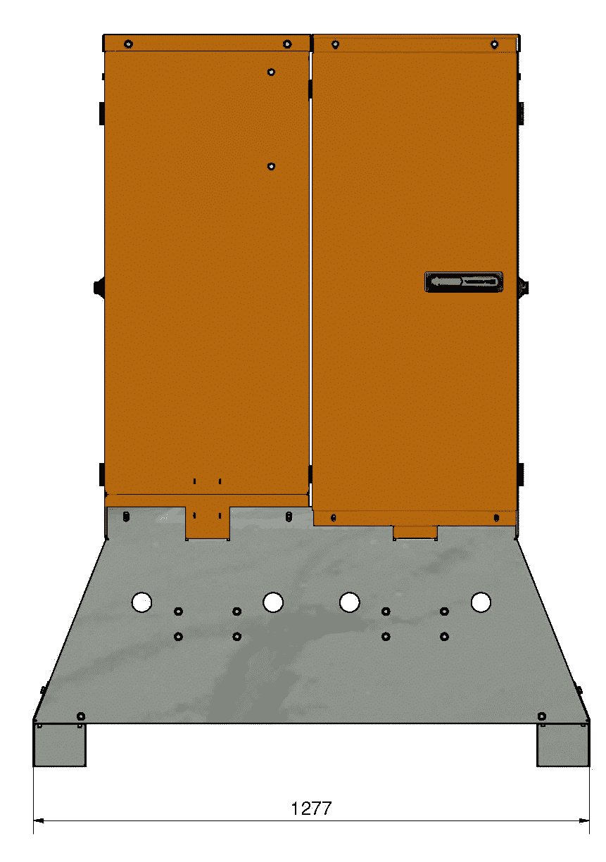 Keskus on tukeva ja siinä on nostolenkit ja trukkitaskut jalustassa. Lukittavien ovien takana on syöttö, tilavaraus kWh-mittarille ja lähdöt. Jauhemaalattu 2 mm merialumiini rungon materiaalina on korroosionkestävää. Keskuksessa on 1200 A kiskosto ja virtamuuntajamittaus.