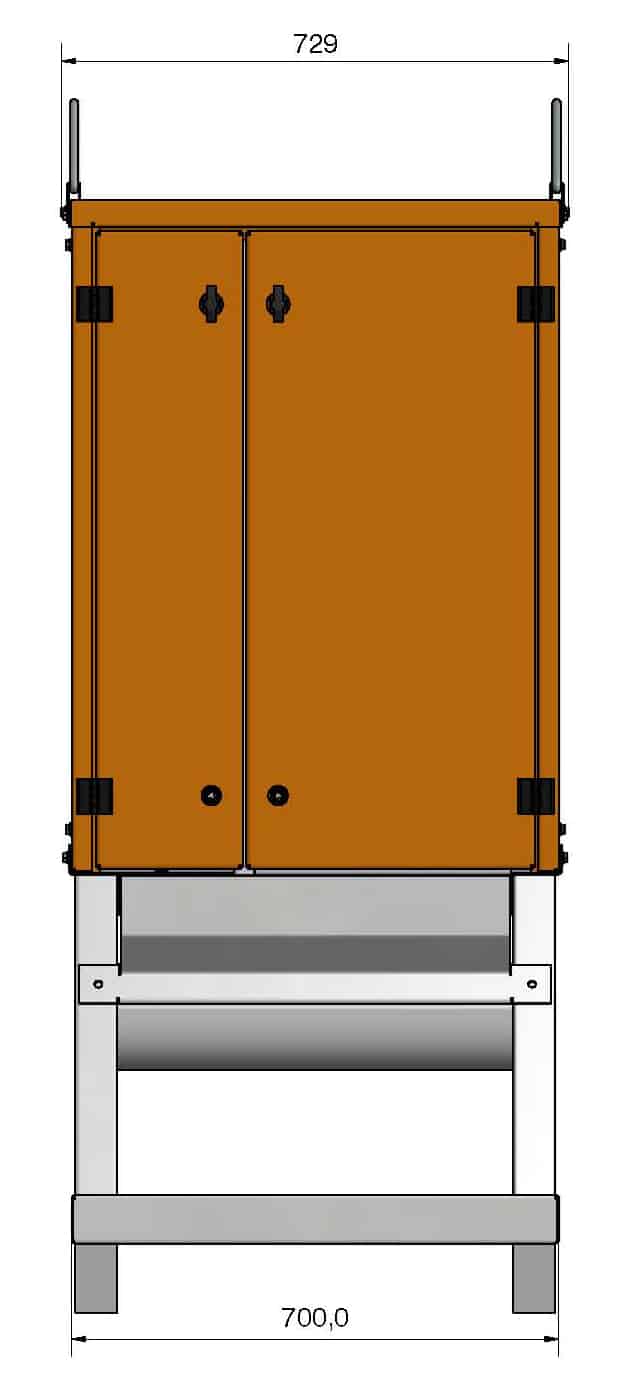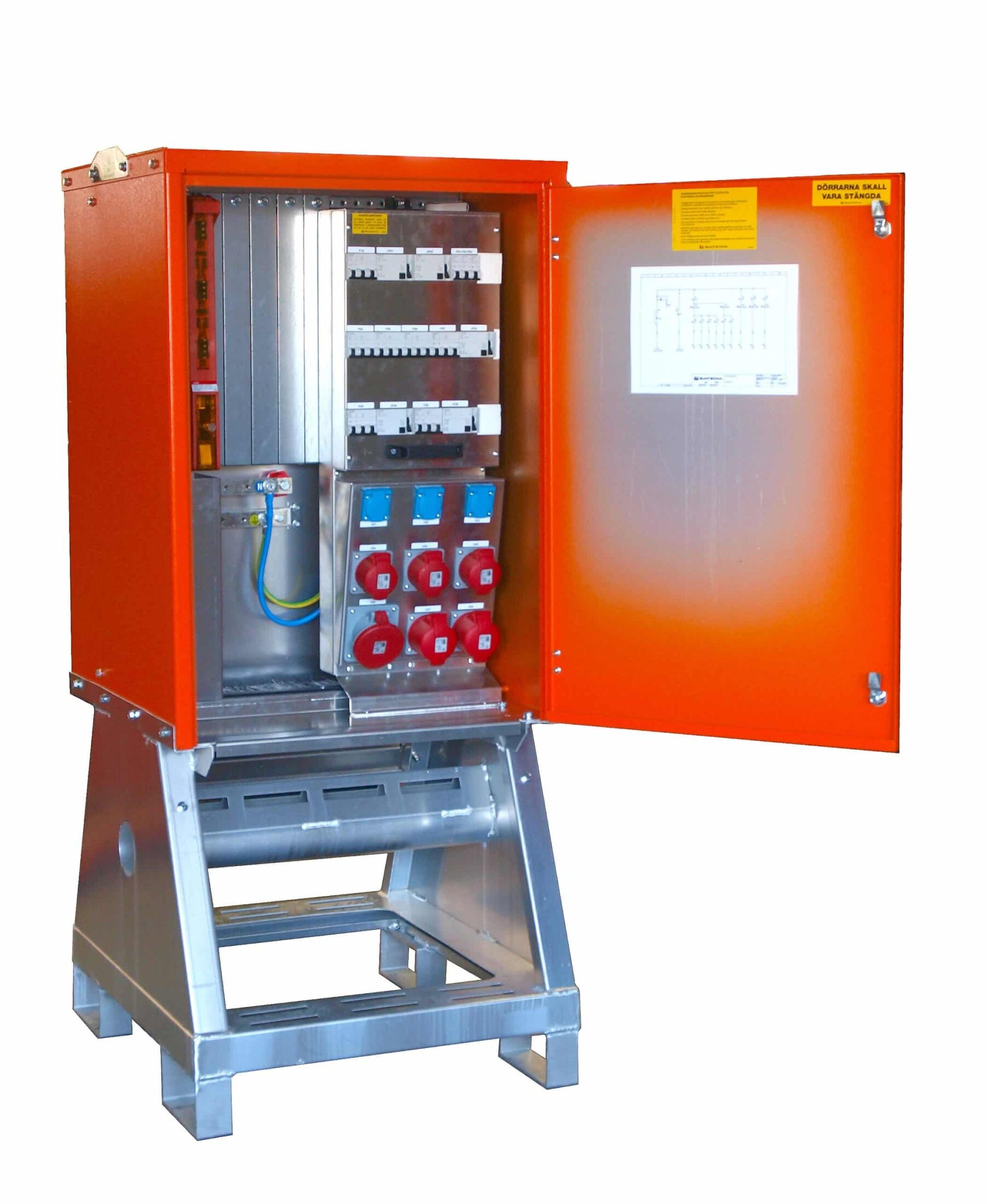 Modulaarinen pääkeskus kovaan työmaakäyttöön. Vankka ja kompakti merialumiinista valmistettu runko, nostosilmukat, trukkitaskut ja lukittavat ovet. Tilavaraus kWh-mittarille. Paino 109 kg.