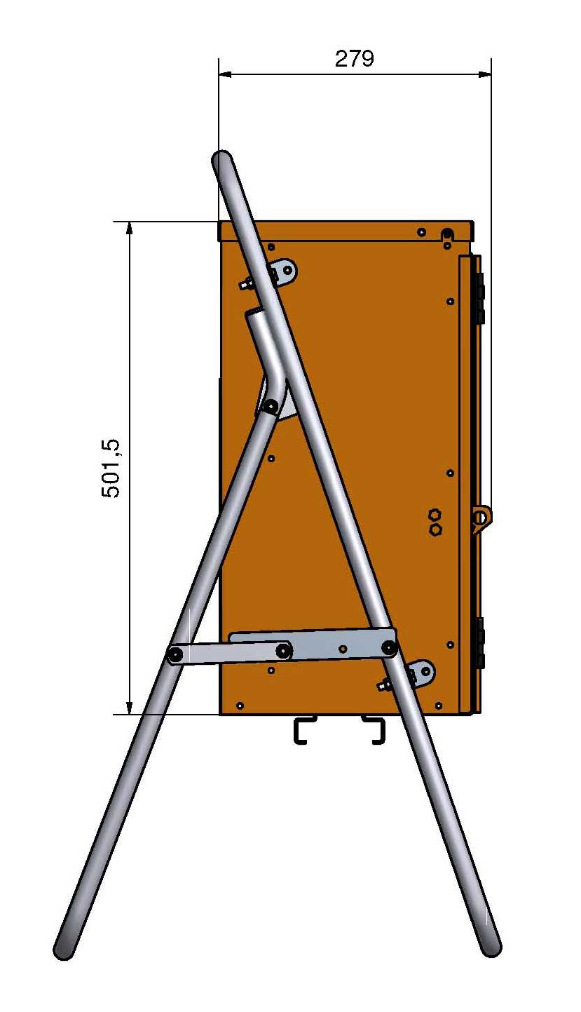 Pääkeskus kovaan työmaakäyttöön. Tukeva ja kompakti kotelo, jossa lukittava ovi ja taittuva ruostumaton jalka. Keskuksen runko on valmistettu jauhemaalatusta ja korroosionkestävästä 2 mm alumiinista. Tilavaraus kWh-mittarille. Paino 23 kg.