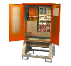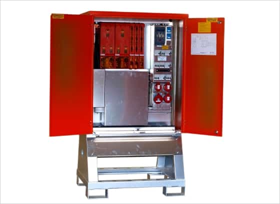 Modulaarinen pääkeskus kovaan työmaakäyttöön. Vankka ja kompakti merialumiinista valmistettu runko, nostosilmukat, trukkitaskut ja lukittavat ovet. Tilavaraus kWh-mittarille. Paino 250 kg.