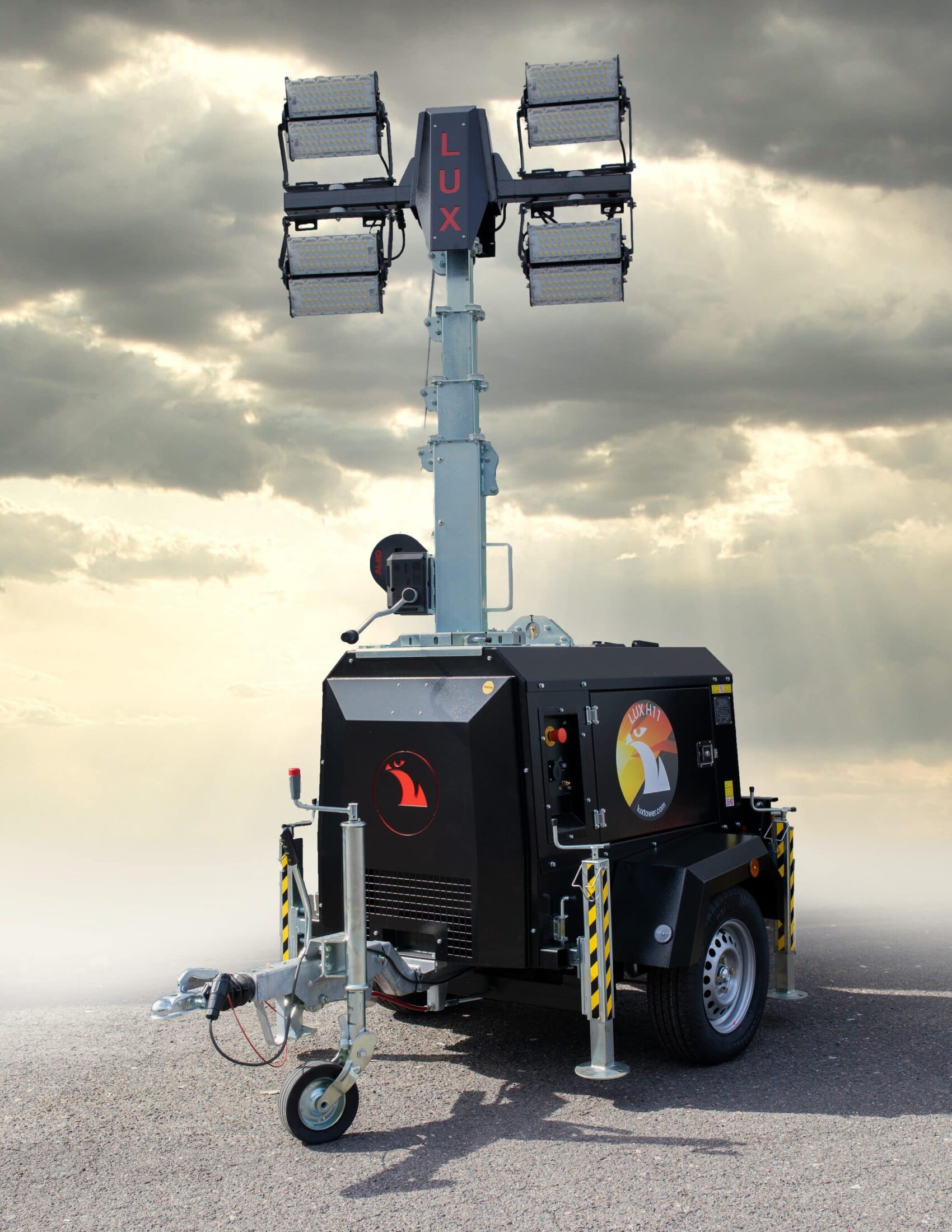 Helposti liikuteltava ja käsiteltävä 8,5m valomasto sopii hyvin niin työmaille kuin tapahtumiin. Liikennetraileri helpottaa kuljetusta työmaiden välillä. Trukkitaskut ja nostokoukut (5 kpl) mahdollistavat maston liikuttelun nosturilla ja trukilla.